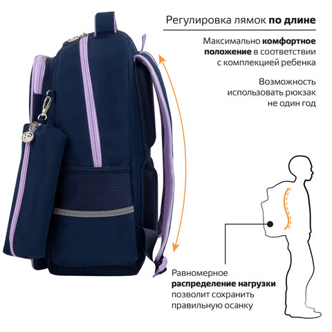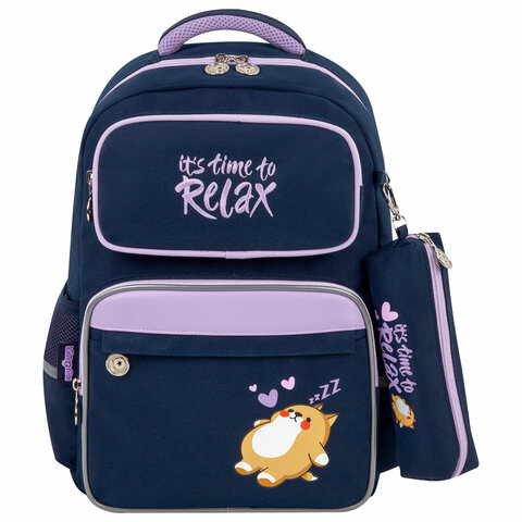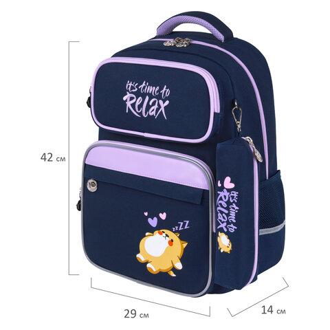 Рюкзак ЮНЛАНДИЯ COMPLETE, с пеналом в комплекте, эрго-спинка, "Bored cat", 42х29х14 см, 272055