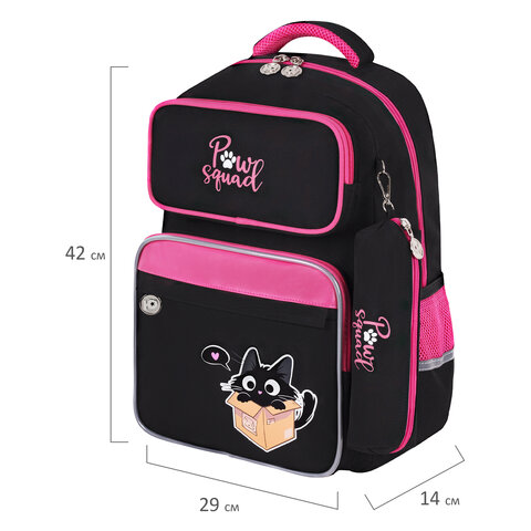 Рюкзак ЮНЛАНДИЯ COMPLETE с пеналом в комплекте, эрго-спинка, "Box cat", 42х29х14 см, 273120