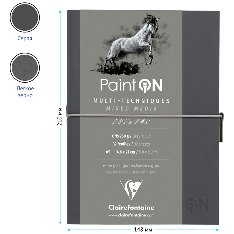 Скетчбук для смешанных техник 32л., А5 Clairefontaine "Paint ON", на сшивке, 250г/м2, легкое зерно,