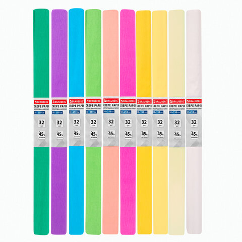 Набор гофрированной (креповой) бумаги, 32 г/м2, 10 рулонов, 50х250 см, пастель, BRAUBERG, 112557