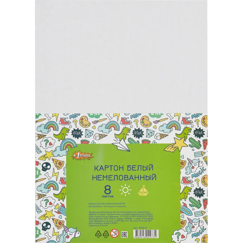 Картон белый №1 School Отличник (А4, 8 листов, немелованный)