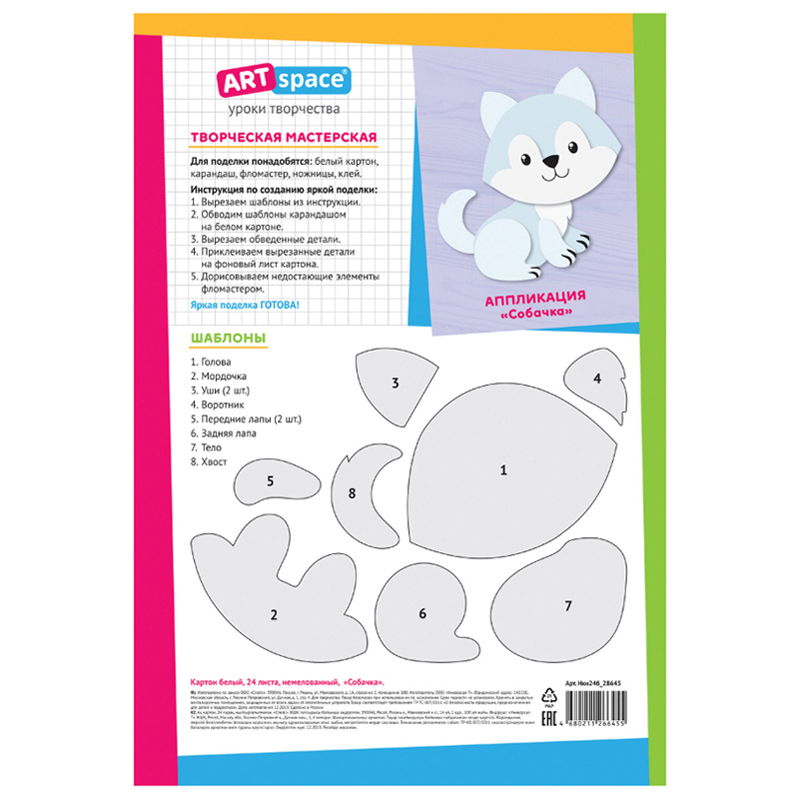 Картон белый A4, ArtSpace, 24л., немелованный, в папке, "Собачка"