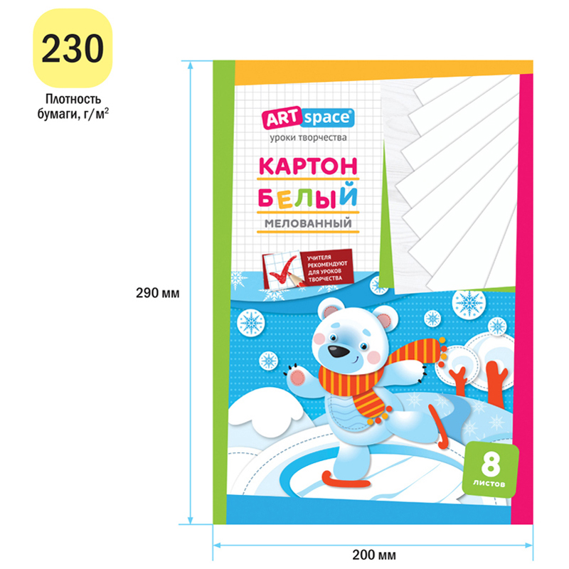 Картон белый A4, ArtSpace, 8л., мелованный в папке