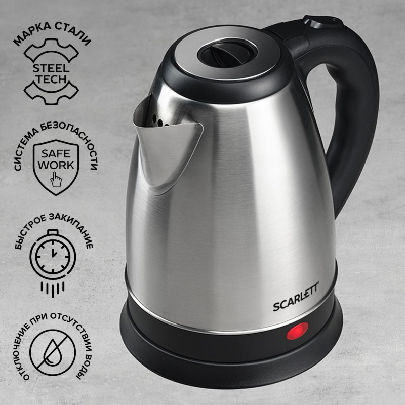 Чайник электрический SCARLETT SC-EK21S51, сталь, 1500Вт, 1.8л