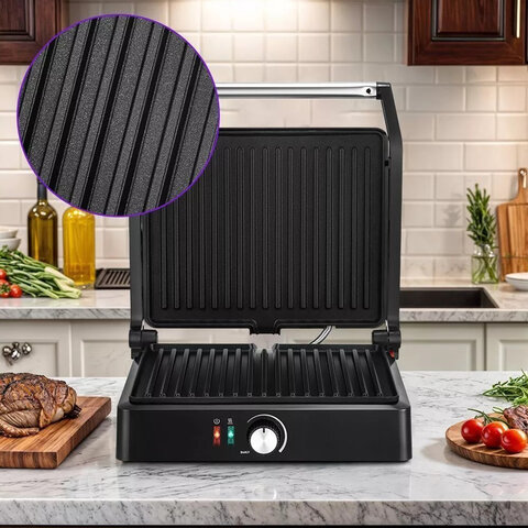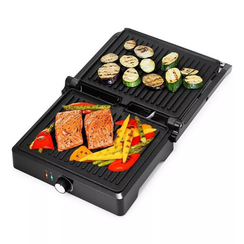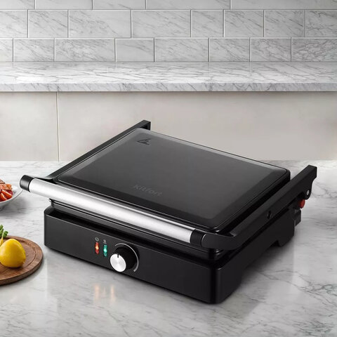 Электрогриль KITFORT KT-3662, 2000 Вт, фиксированные панели, регулировка температуры, серебро/черный, КТ-3662