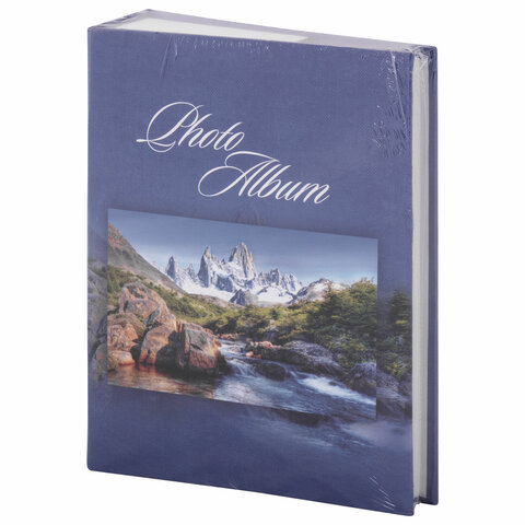 Фотоальбом BRAUBERG на 200 фотографий 10х15 см, твердая обложка, "Горный пейзаж", синий, 390669