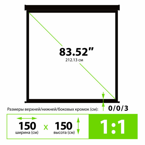 Экран Cactus Wallscreen CS-PSW-150X150-BK, 150x150 см, 1:1, настенно-потолочный, черный, PSW-150x150-BK