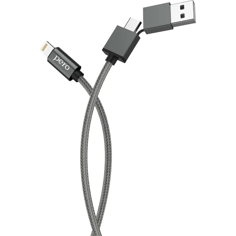 Кабель PERO, DC-07, 1м, Type-C/USB-A to Lightning, 20W, серый