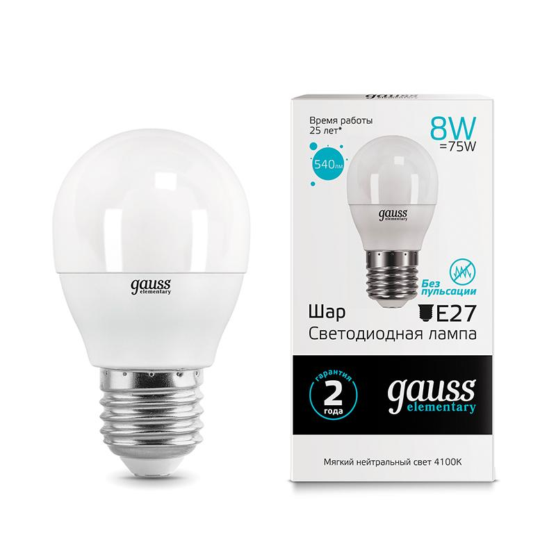 Лампа светодиодная Gauss LED Elementary Шар 8Вт E27 540Лм 4100K (53228)