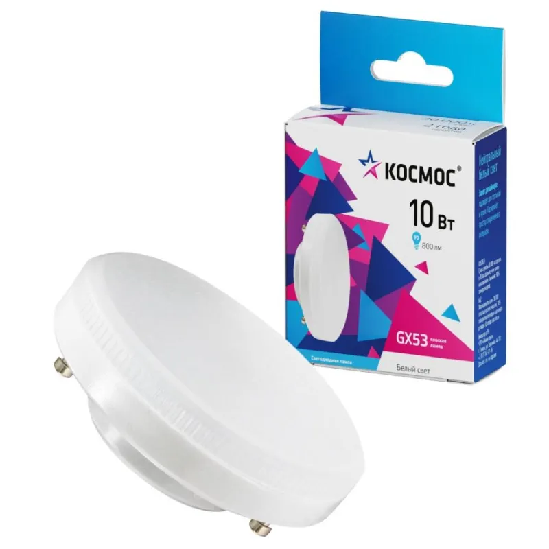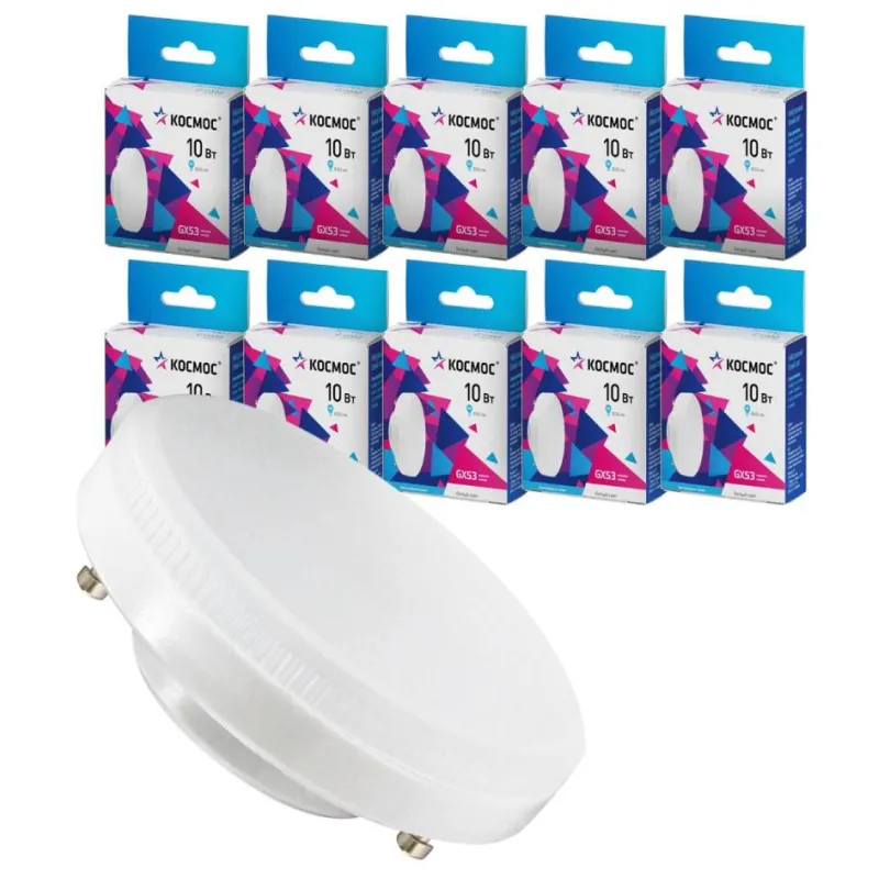 Лампа светодиодная КОСМОС 10Вт GX53 220В 4500K 10 шт/уп (LED10wGX5345C_10)
