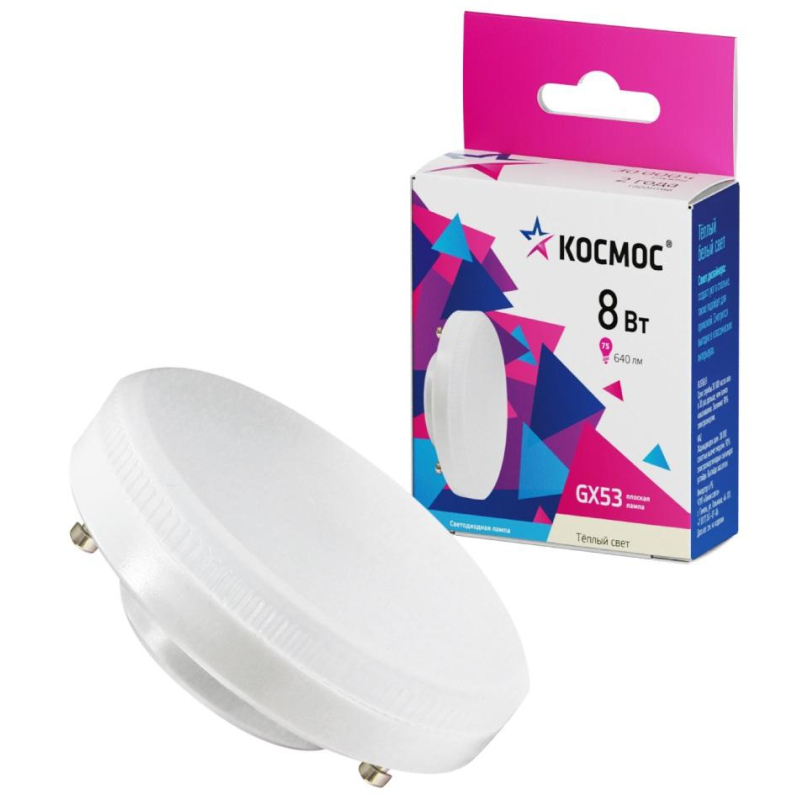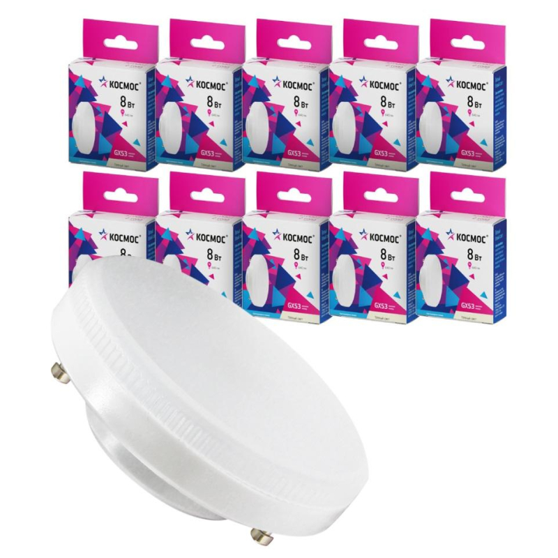 Лампа светодиодная КОСМОС 8Вт GX53 220В 3000K 10 шт/уп (LED8wGX5330C_10)