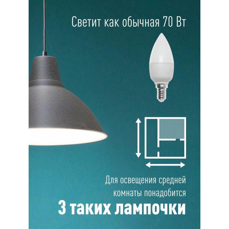 Лампа светодиодная КОСМОС ЭКОНОМИК CN 8.5W E14 10 шт/уп (LED8.5wCNE1465_10)
