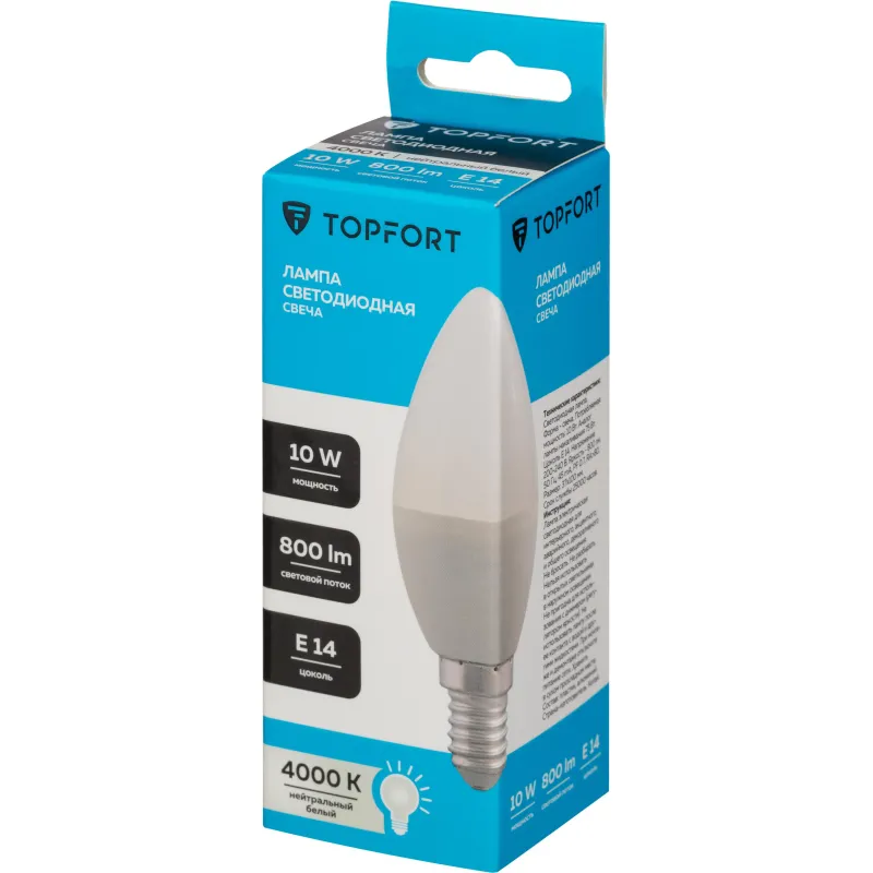 Лампа светодиодная Topfort E14 10W 4000K свеча