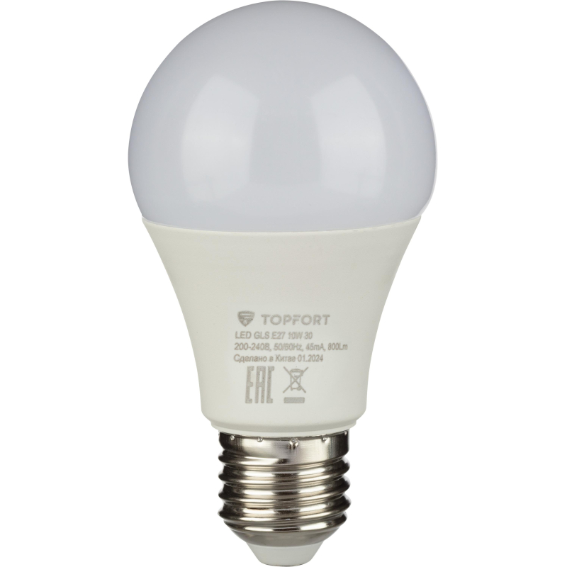 Лампа светодиодная Topfort E27 10W 3000K груша