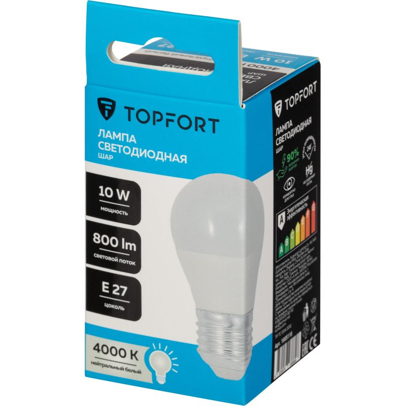 Лампа светодиодная Topfort E27 10W 4000K шар