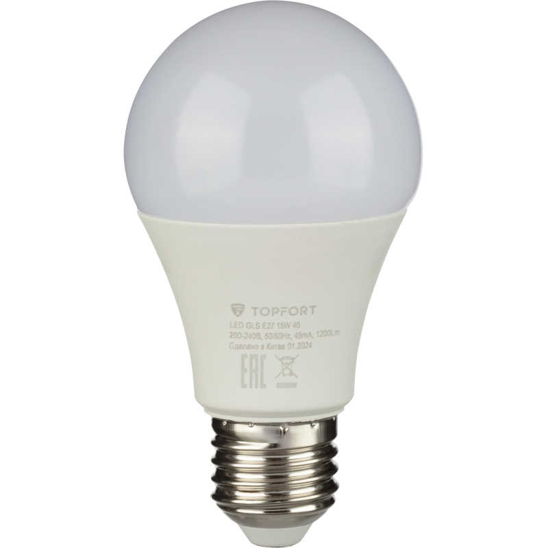 Лампа светодиодная Topfort E27 15W 4000K груша