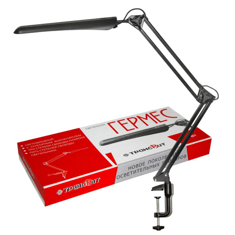 Светильник Трансвит Гермес, на струбцине,(черный),светодиодный, диммер