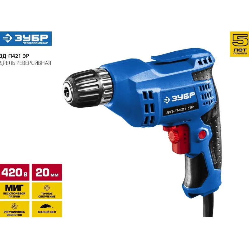Дрель безударная ЗУБР ЗД-П421 ЭР, 420 Вт