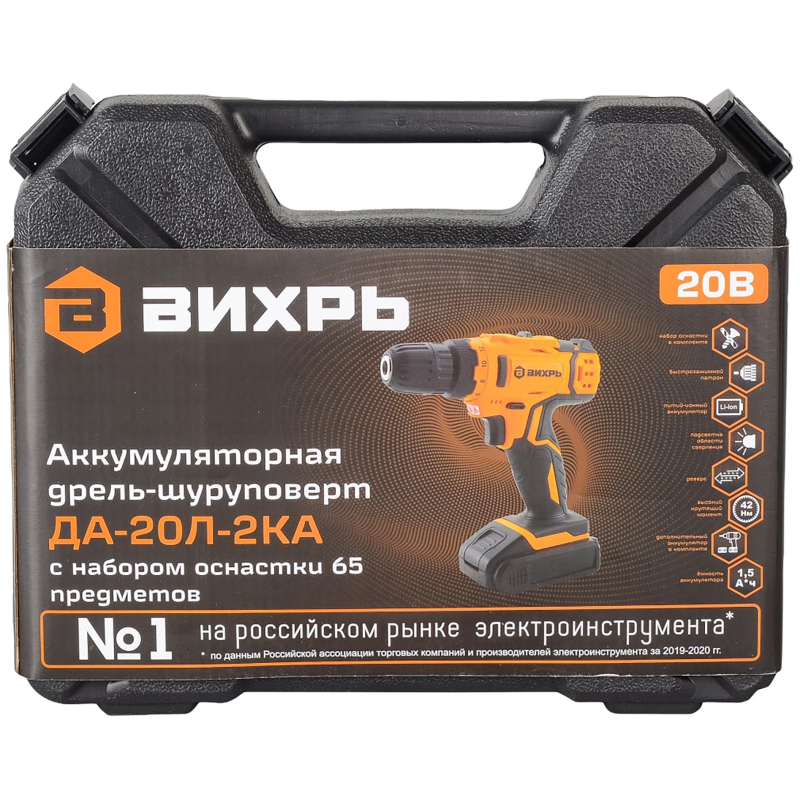 Дрель-шуруповерт аккум.ДА-20Л-2КА с набором оснастки 65 предм.(72/14/36)