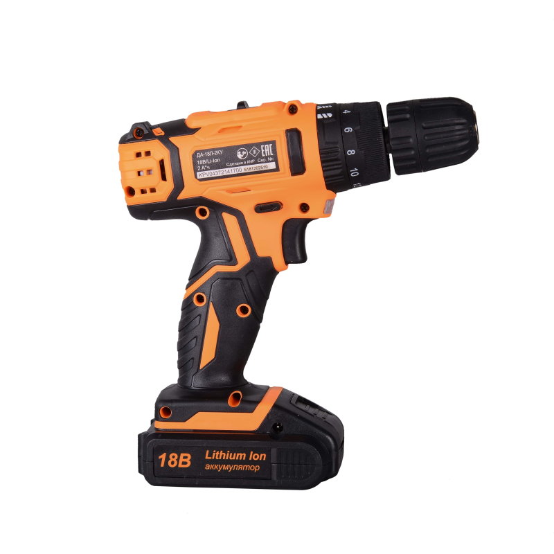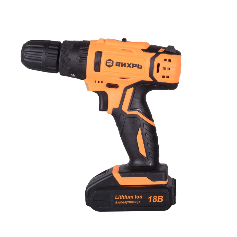 Дрель-шуруповерт Вихрь ДА-18Л-2КУ оснащена патроном быстрозажимного типа. Доступный диапазон диаметров зажима — от 0.8 до 10 мм. Имеется подсветка рабочей зоны, польза от применения которой несомненна даже при высоком уровне освещенности в помещении (или на улице, если работа ведется вне здания).