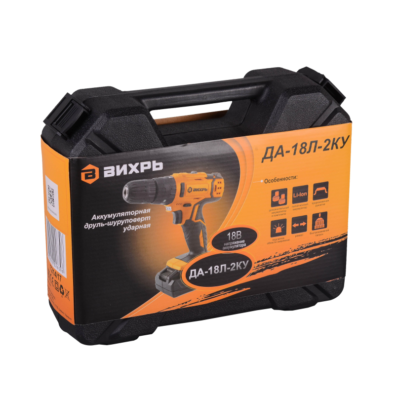 Дрель-шуруповерт аккум. ударная ВИХРЬ ДА-18Л-2кУ 45Нм, 2АКБ(2Ач) (72/14/17)