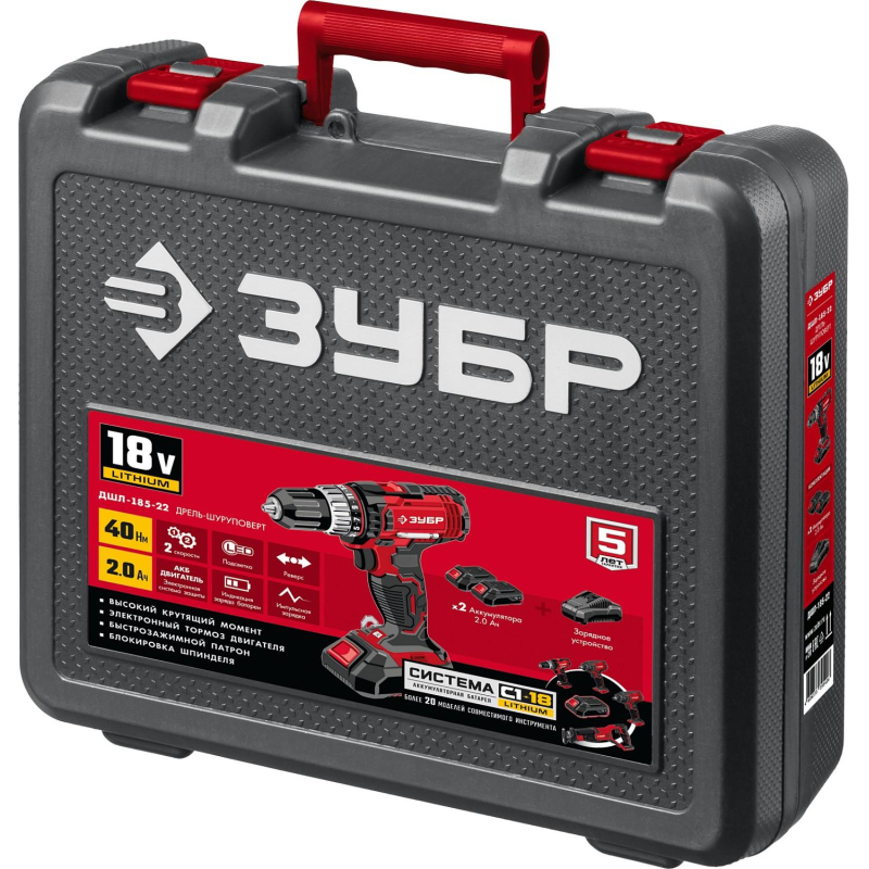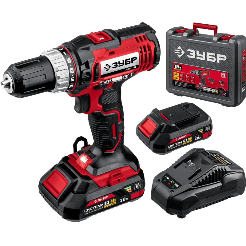 Дрель-шуруповерт аккум. ЗУБР Мастер 18В, 2х2.0Ач, 40Нм (ДШЛ-185-22)