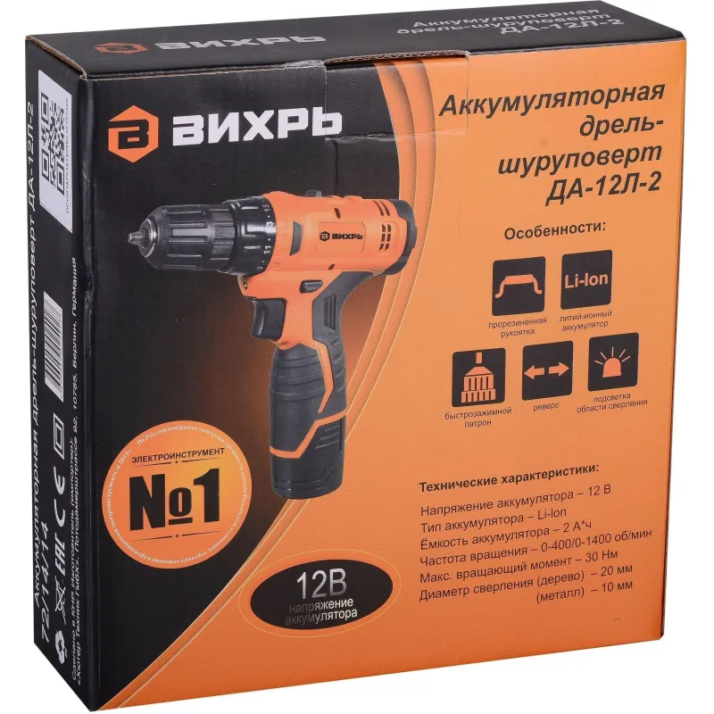 Дрель-шуруповерт аккумуляторная Вихрь ДА-12Л-2 (72/14/14)