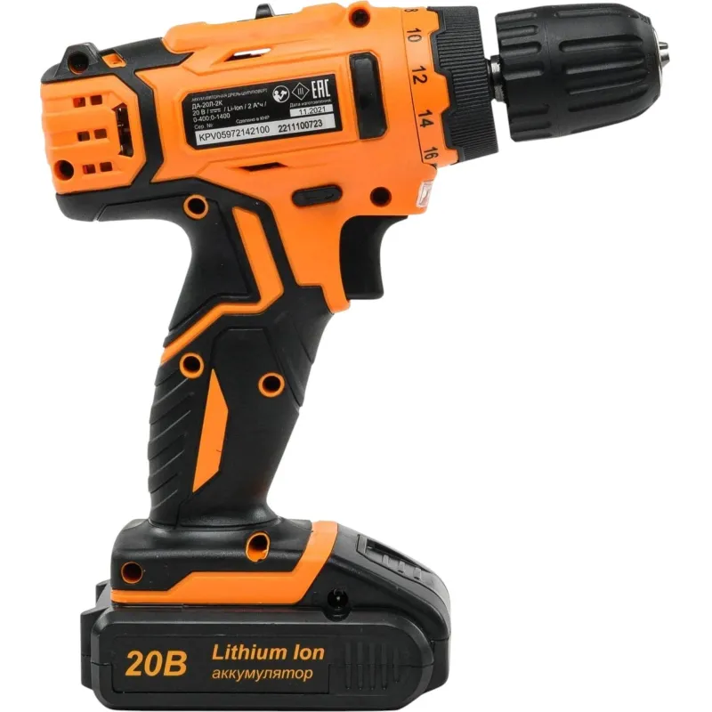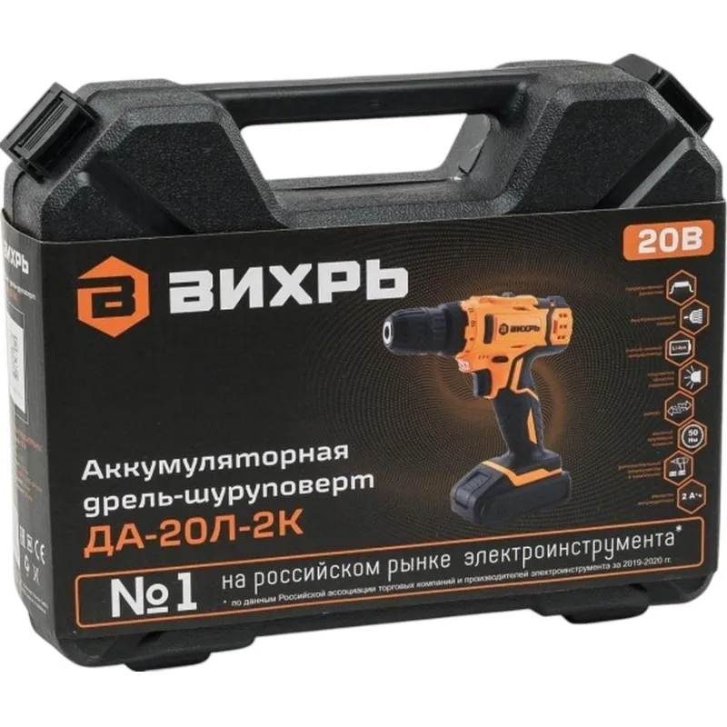 Дрель-шуруповерт аккумуляторная ВИХРЬ ДА-20Л-2К 2,0 А/ч (72/14/21)