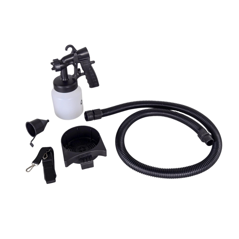 Разнесенные компрессорный блок и краскораспылитель, снижают вес в руках оператора. Гофрированный шланг позволяет окрашивать поверхности, при нахождении компрессорного блока на полу. Воздух из компрессора подается гофрированным шлангом в краскораспылитель. Из бачка под давлением сжатого воздуха, краска всасывающей трубкой подается в форсунку, для смешивания ее