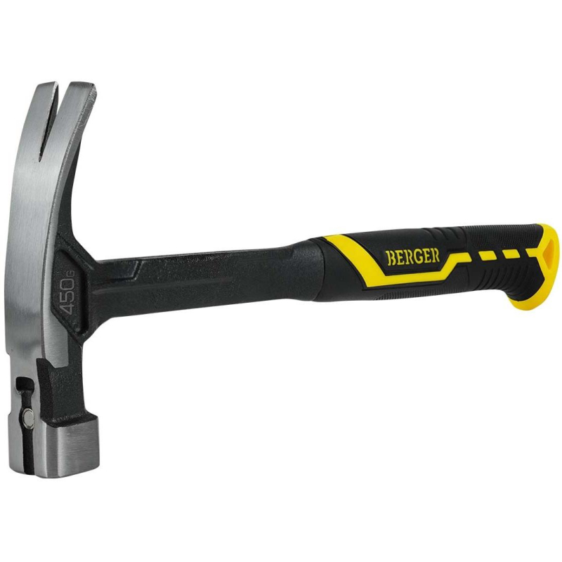 Молоток-гвоздодер цельнокованый 450 г, магнит,3х-комп.ручка, BERGER BG1527