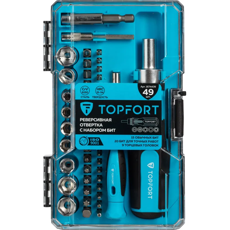 Отвертка с набором бит, обычные + точные, 49 предметов TOPFORT (580149)
