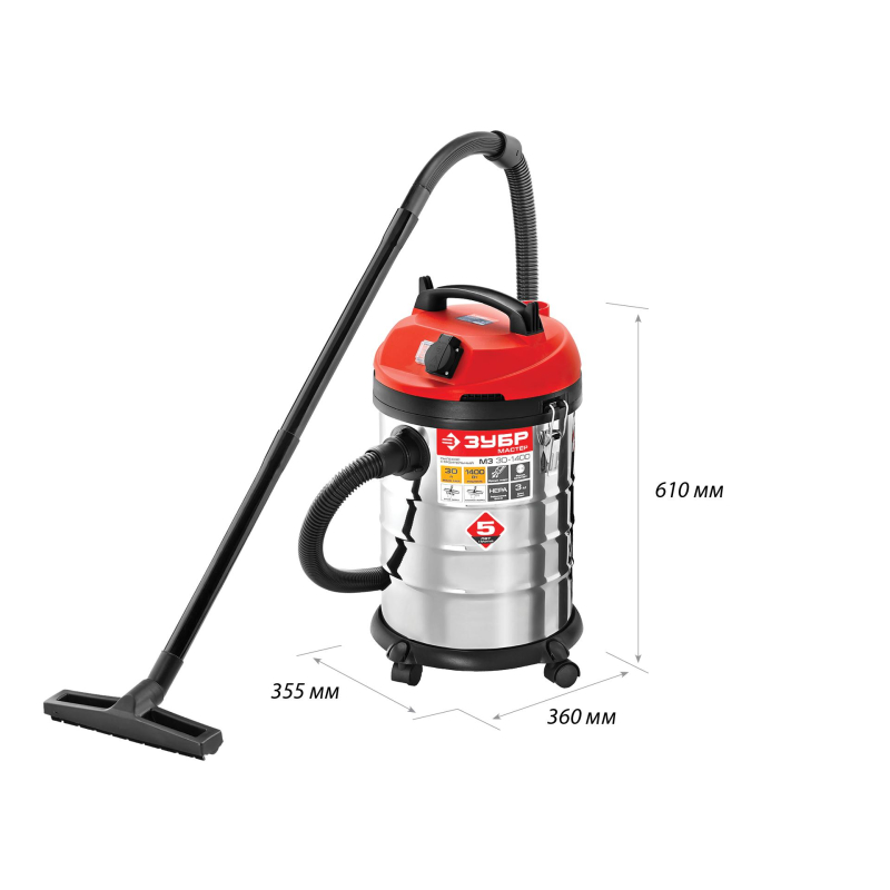 Пылесос строительный ЗУБР 1400 Вт, 30л (ПУ-30-1400 М3)