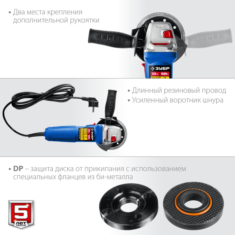 Шлифмашина угловая ЗУБР 125мм, 1500Вт, регул.оборотов (УШМ-П125-1500 ЭПСТ)