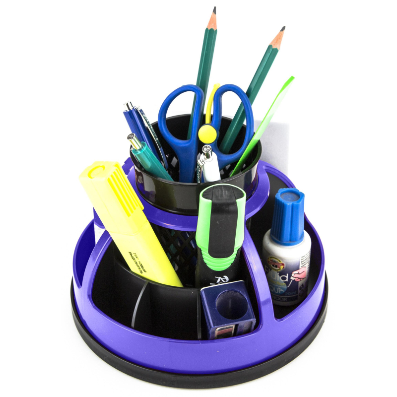 Подставка-органайзер для канцелярских принадлежностей Attache 9 отделений фиолетовая/черная 16x16x11 см вращающаяся