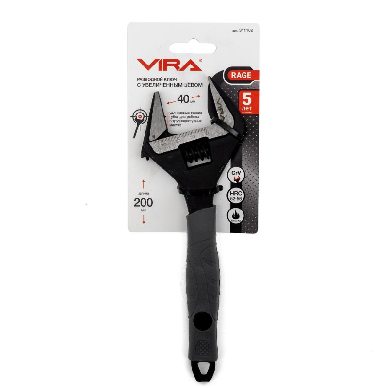 Ключ разводной с широким зевом 200 мм VIRA RAGE 311102