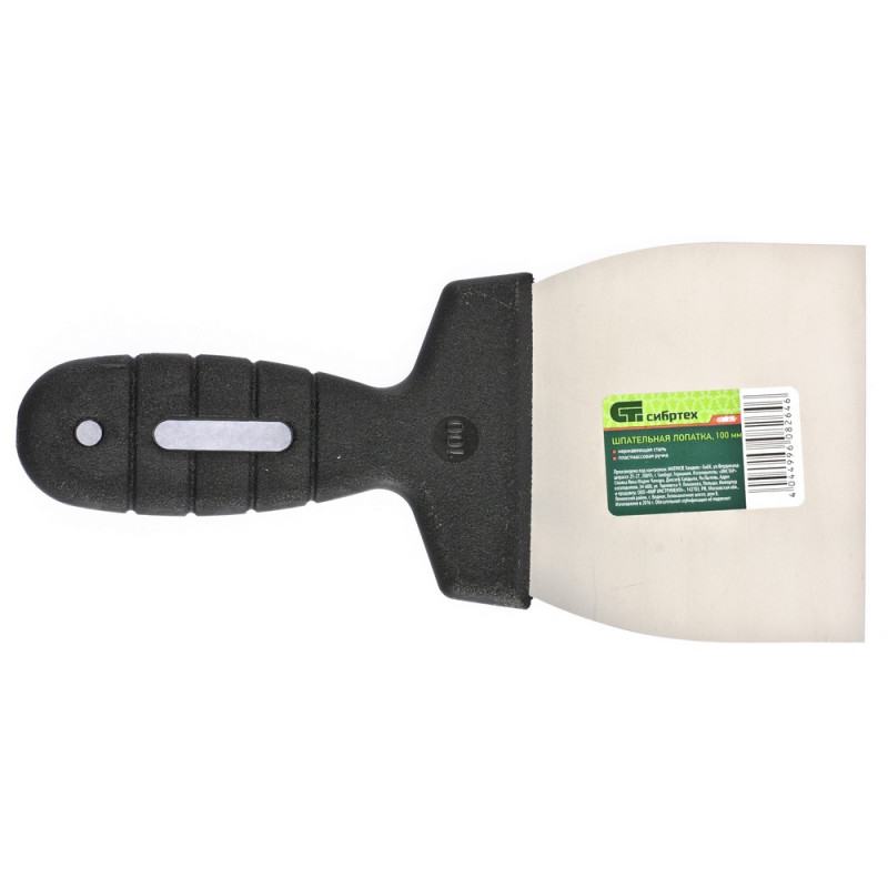 Шпатель СИБРТЕХ лопатка нерж.сталь 100мм, пластм.ручка (85435)