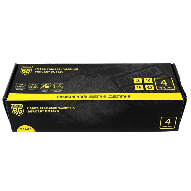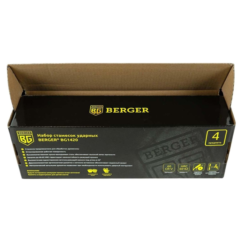 Набор стамесок для обработки древесины, 4 шт:8,12,16,24 мм, Berger