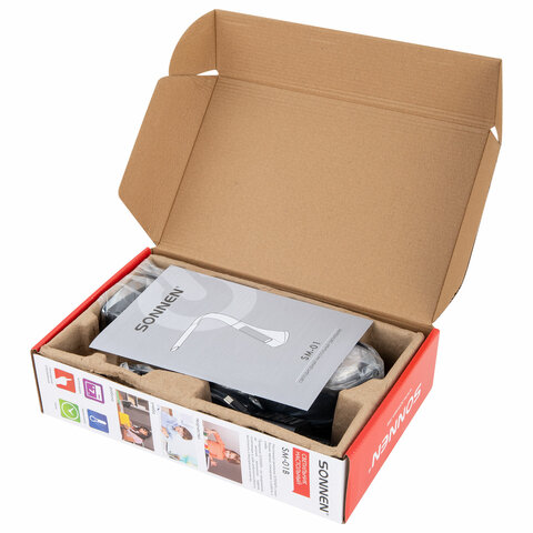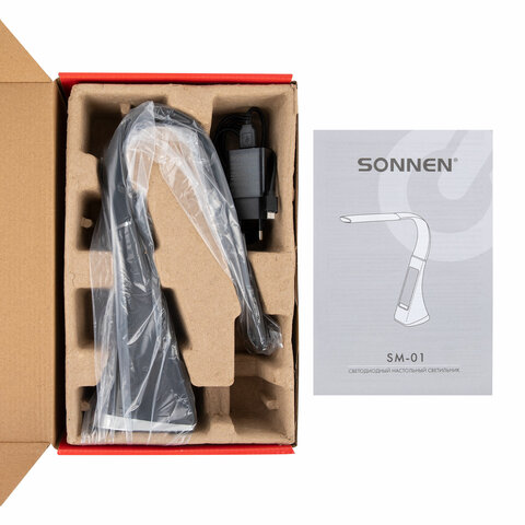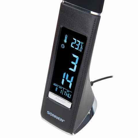 Настольная лампа-светильник SONNEN SM-01B на подставке, LCD-экран, СВЕТОДИОДНАЯ, 5 Вт, черный, 238232