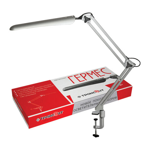 Светильник настольный "Гермес", на струбцине, светодионый, 8 Вт, сенсорный выключатель, серебристый,