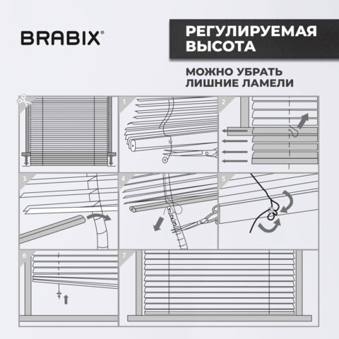 Жалюзи горизонтальные BRABIX 65х160 см, АЛЮМИНИЙ, цвет белый, 608625