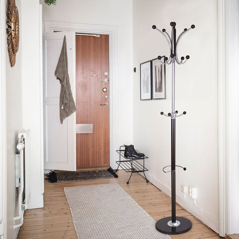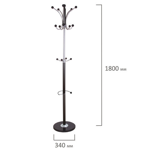 Вешалка-стойка BRABIX "CR-8342" на мраморном диске, металл, 5+4 крючка, цвет черный, 606439