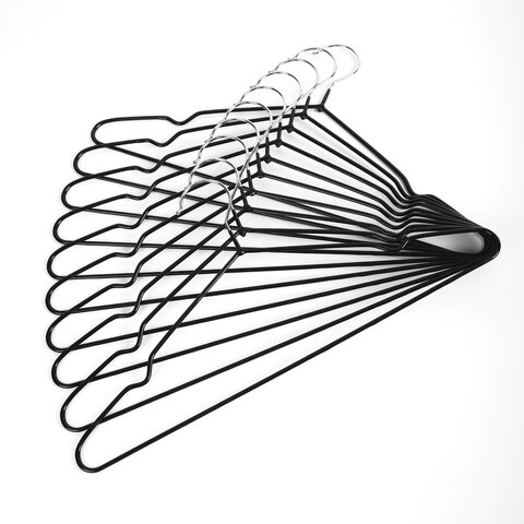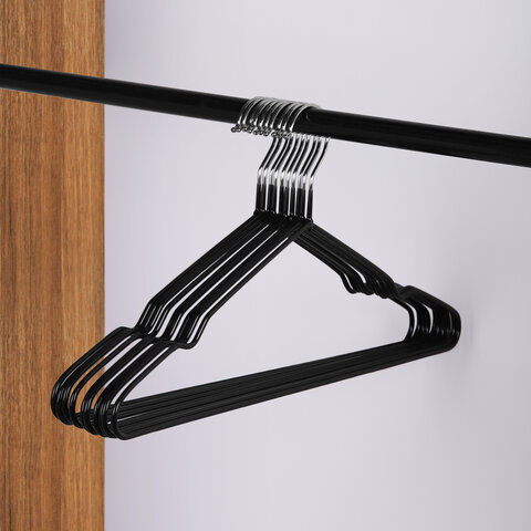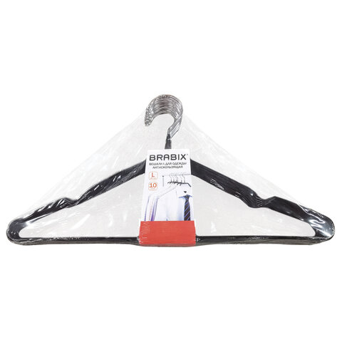 Вешалки-плечики для одежды, размер 48-50, металл, антискользящие, КОМПЛЕКТ 10 шт., черные, BRABIX PR
