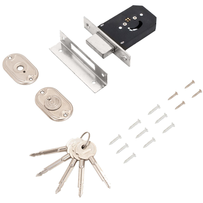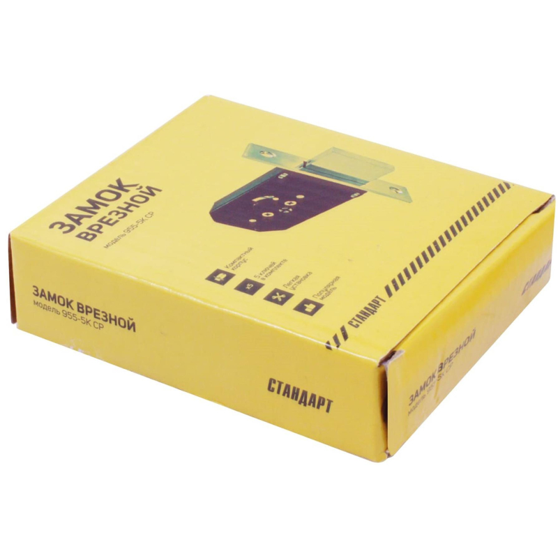Замок врезной УЗК_Стандарт 955-5К CP ст.хром(б/руч,д/дер.дв,крест.5кл)