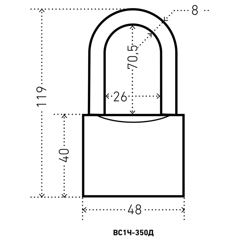 Замок навесной УЗК Аллюр ВС1Ч-350Д (48xd=8x70,5) чугун серый (дл.дуж/5кл)