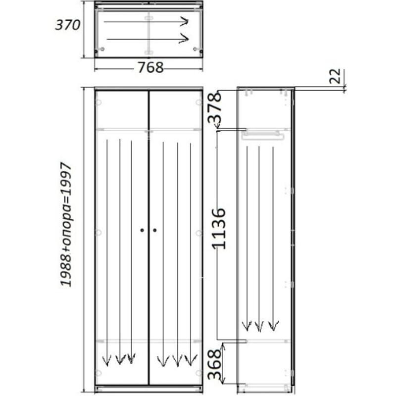 | Расположение штанги для одежды | перпендикулярно задней стенке |
